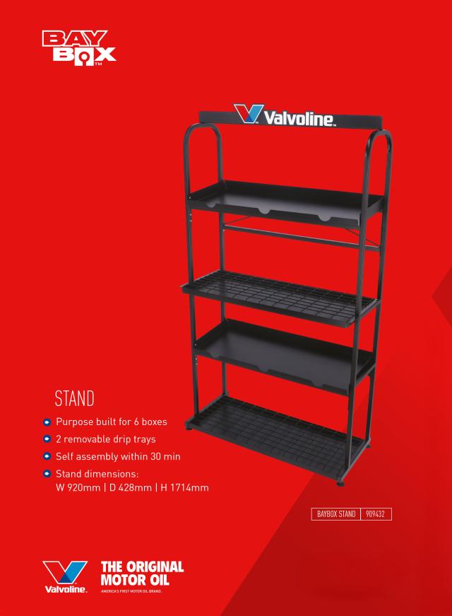 Ved bestilling av 6 stk Valvoline BAYBOX™, får du med stativet helt kostnadsfritt!